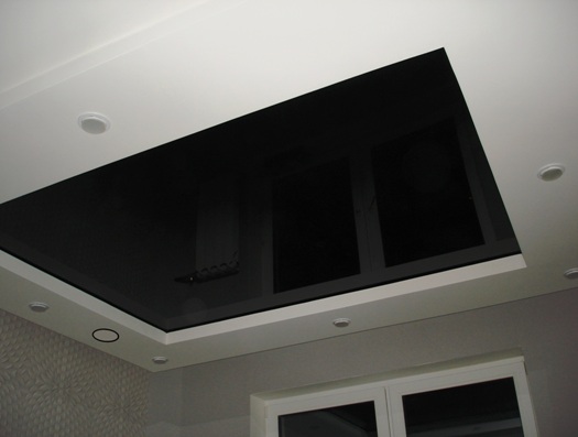 Диффузор монтируется в одной плоскости с натяжным потолком.